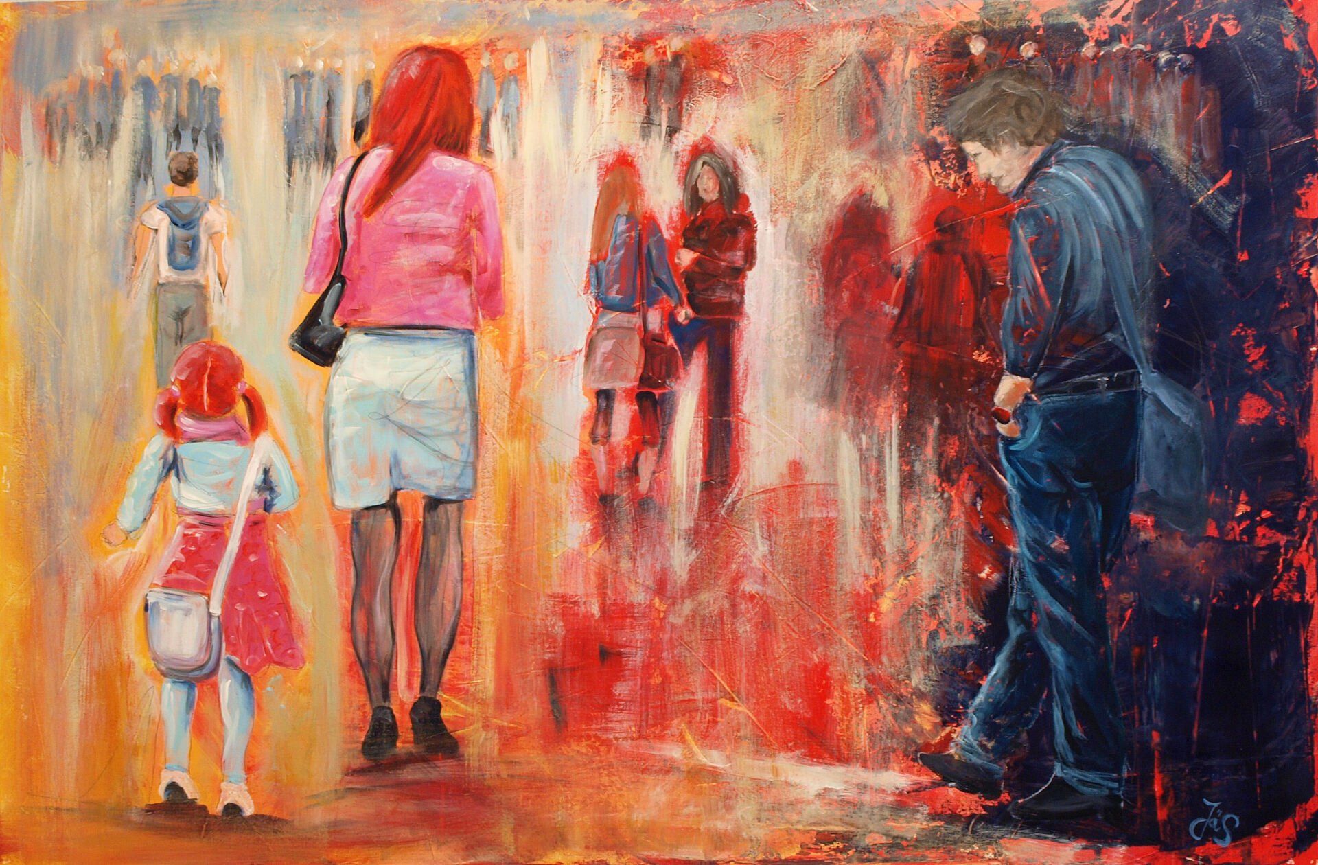 Lebendige, vielschichtige Flächen, leuchtende Farben, interessante, oftmals raue Oberflächen und unterschiedlichste Materialien bestimmen meine Malerei. Ich arbeite mit Pigmenten und Acrylfarben, Marmormehl, Sand, Spachtelmasse, Ton, Collagen….
