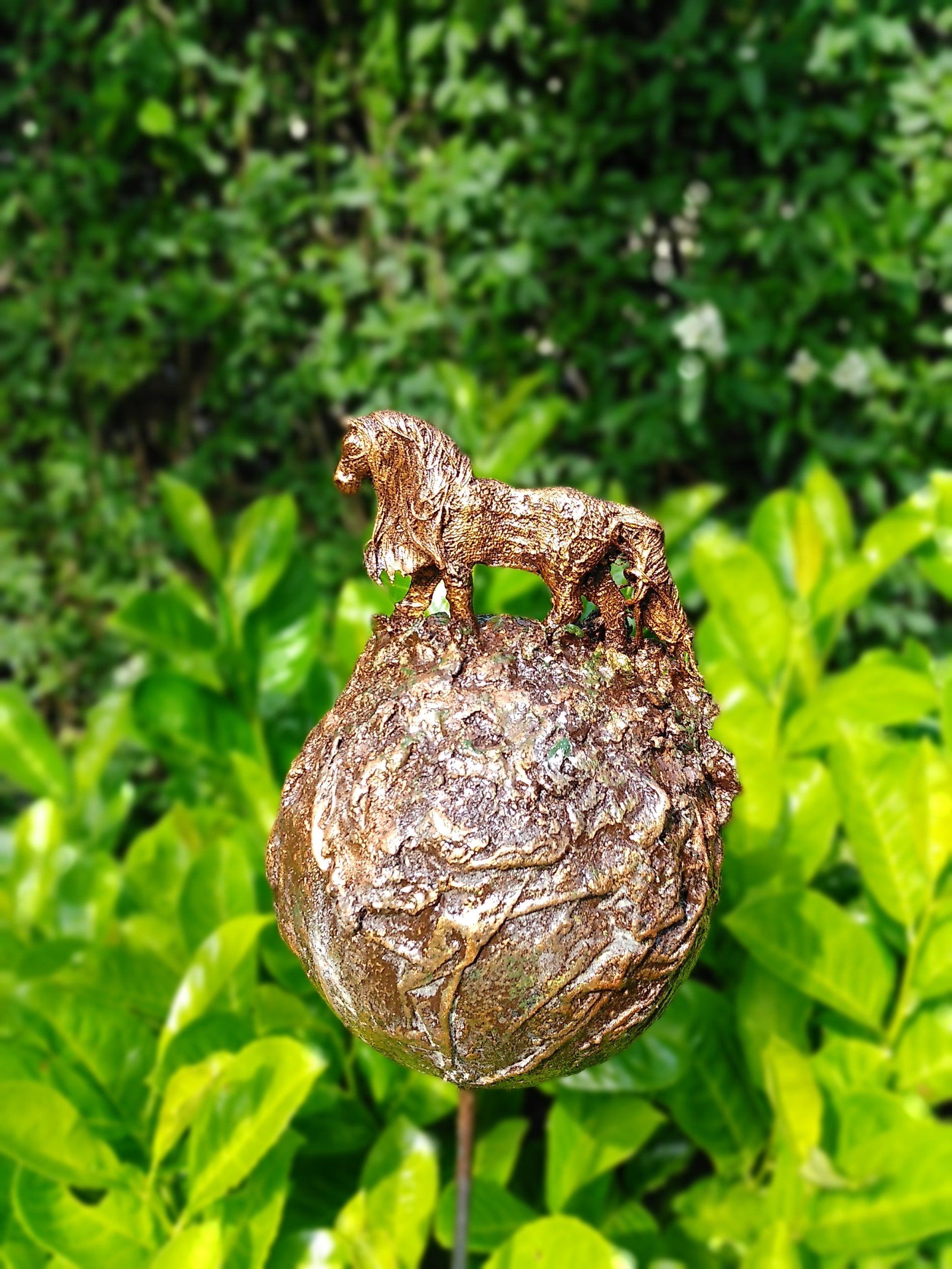 In diesem Kreativkurs gestalten wir eine individuelle Gartenstecker Kugel. Die Kugel auf den oben abgebildeten Fotos sind nur Beispiele wie so eine Kugel aussehen kann. Du kannst Dir eigene Figuren oder Accessoires mitbringen, egal welche Farbe sie haben, wir gestalten Sie sowieso um.